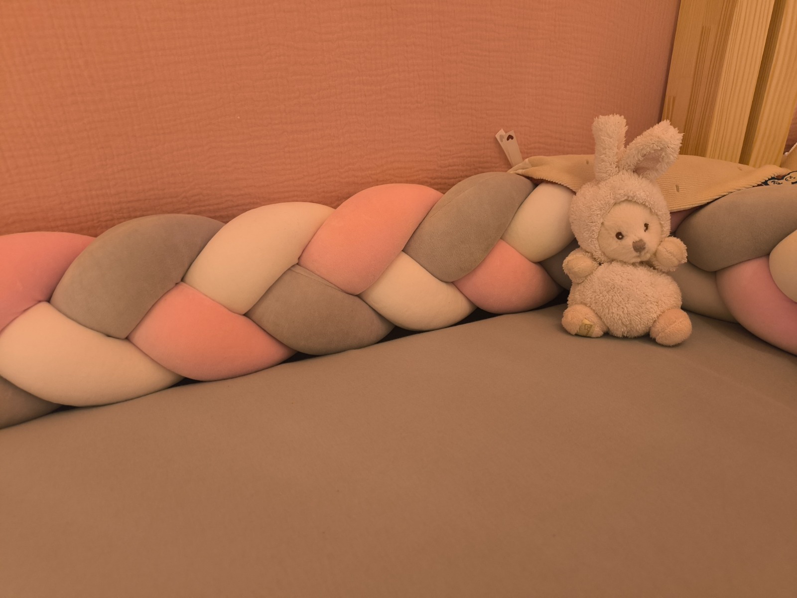 - for å beholde den originale formen, rull den opp og knytt den med bånd på flere steder før vask, endene på fletten er sydd sammen og vil ikke løsne under vask,